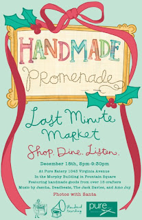 The Handmade Promenade: Last Minute Market is next Saturday! Come support local artists & your community and find fabulous gifts for those loved ones you haven't yet bought for. Check out the Handmade Promenade blog to get a sneak peek at the artists participating & their wares. You'll be able to find anything for unique christmas ornaments to plush toys to ceramics.